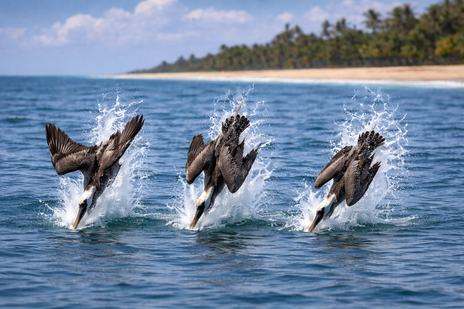 On my last day there, I witnessed three pelicans diving into the ocean after fish, perfectly synchronized.