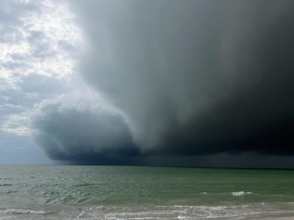 This system rolled across the ocean, headed right at our beach. As we were getting ready to grab our towels and run, we saw an even more ominous storm farther down the horizon which produced a waterspout.